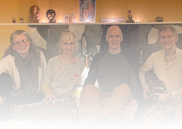 Come to chanting meetings with live music played by Bhajananda. From left to right: Mikaela, Jo, Allan, Matthew. We play Indian devotional music known as bhajans and kirtan. Here’s an example of Krishna Das singing this kind of music: https://www.youtube.com/watch?v=Ptc8x37ojbe